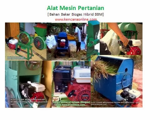 Semua alat mekanisasi dan keteknikan pertanian yang disajikan dibawah ini berbahan bakar biometan RNG – suatu gas alam terbarukan ( Renewable Natural Gas). Berbagai jenis alat keteknikan dan mekanisasi pertanian berbahan bakar biometan RNG ( biogas murni) antara lain bidang teknik mesin budidaya pertanian ( traktor, pompa air/irigasi), teknik proses hasil pertanian/pangan ( mesin penepung biji/ disk mill, mesin parut, alat perontok padi, jagung, kacang, mesin pengering gabah dan Rice Mill Unit kesemuanya berbahan bakar biogas hibrid dengan bahan bakar minyak/BBM ), perbengkelan dan listrik pertanian ( generator listrik, generator alternator las, kompresor, brander las dan burner berbahan bakar biogas), alat pembuatan pupuk kompos organik ( mesin pencacah, mesin kompos, komposter dan mesin pengayak kompos).