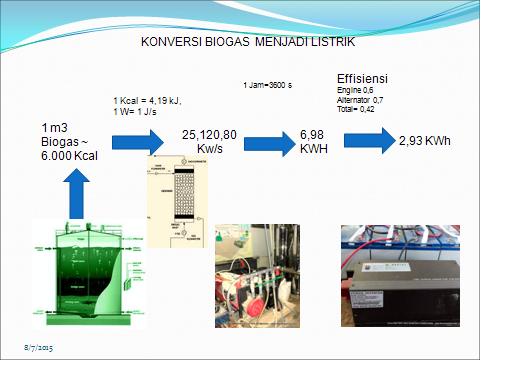 Pembangkitan energi listrik dari keresediaan bahan bakar (biogas, Syn Gas) dapat dipilih disesuaikan dengan Neraca Energi dan perhitungan atas kebutuhan (KWH) dan keperluan beban terpasang. Ketika terdapat kesesuaian dengan mekanisme Feed in Tariff dengan PLN, terdapat pilihan generator biogas mulai 5 KW hingga 1.200 KW/ 1.2 MW. Pilihan lain dari penggunaan tenaga listrik sampah tanpa kerumitan prosedur dengan PLN bisa digunakan guna daya kereta listrik.