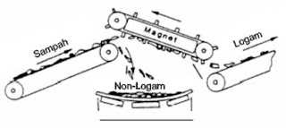 Conveyor pemilah dan pemisah logam (magnetic separator) memegang peranan penting bagi perolehan sampah per jenisnya sehingga menentukan pilihan teknologi konversi berikutnya