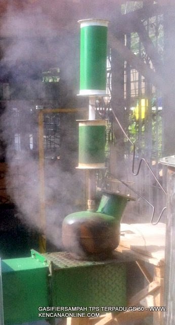 Gasifier Sampah TPS 3R Terpadu GS 50 dikembangkan dari tungku gasifikasi biomassa, yang sejak tahun 2005, ada di Bandung, Dengan tambahan fitur (