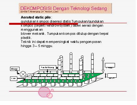 Keempat, stabilitas PH dan intensitas oksigen (aerasi), salah satunya dilakukan dengan memperbesar porositas material, sangat sulit dikontrol jika hanya mengandalkan pada pembalikan manual. Akibat seriusnya, proses dekomposisi berlangsung secara anaerobik (tanpa kecukupan oksigen), timbul reaksi anaerobic dengan keluarnya cairan lindi (leacheate) maupun gas methan (CH4) dan hidrogen sulfifa (H2S). Cairan lindi yang dihasilkan, disamping menimbulkan bau juga menjadi polutan pencemar meresap kedalam tanah, kemudian merembes ke sumur dan saluran air tanah,