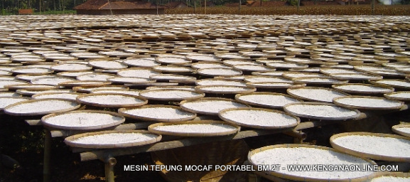 Paket mesin dikonfigurasi bagi pembuatan mocaf ( modified Cassava Flour). Mocaf adalah salah satu produk hasil olahan singkong yang dapat menyubstitusi terigu, dengan karakteristik lembut, putih, tidak berbau singkong dan bahkan glutten free. Dengan kapasitas 2 ton bahan baku per hari, mesin Portabel Tepung Mocaf BM 2T terdiri dari mesin pembersih singkong RKE 1 T, mesin pengupas dan pengiris ( peeller and slicer), 20 drum fermentor L 220, mesin peniris ( spinner) MPP 3000 L, dan mesin penepung ( disk mill)