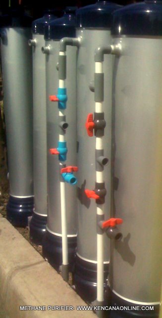 Alat pemurnian biogas (biogas purifier) ditujukan bagi upaya menaikkan efisiensi panas biogas, agar berkualitas dalam penggunaannya sebagai bahan bakar pembangkitan listrik ( generator set), pengganti bensin premium yang makin mahal dan kepentingan menjadi sumber energi menjalankan perangkat elektrik modifikasi seperti lampu biogas, penanak nasi elektrik (rice cooker) biogas maupun perangkat elektronik lainnya. Pemurni metan biogas itu kini mulai terdapat di pasaran. Ada yang  terbuat dari tabung logam stainless, diameter 12 inch dengan tinggi 135 cm, berisi kantong pellet penyerap (absorbers) CO2, H2S dan H2O untuk memurnikan gas metan. Bagi kepentingan pemanfaatan metan tanpa tekanan tambahan (kompresi), dapat juga dipilih alat pemurni metan yang terbuat dari bahan PVC ber SNI.